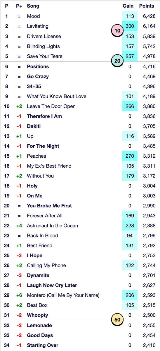 Talk Of The Charts On Twitter 2021 Hot 100 Year End Predictions Week 31 Good 4 U Time Today And Butter Pass The Projected 100 Cutoff Levitating Crosses The Top 10 Cutoff Leave