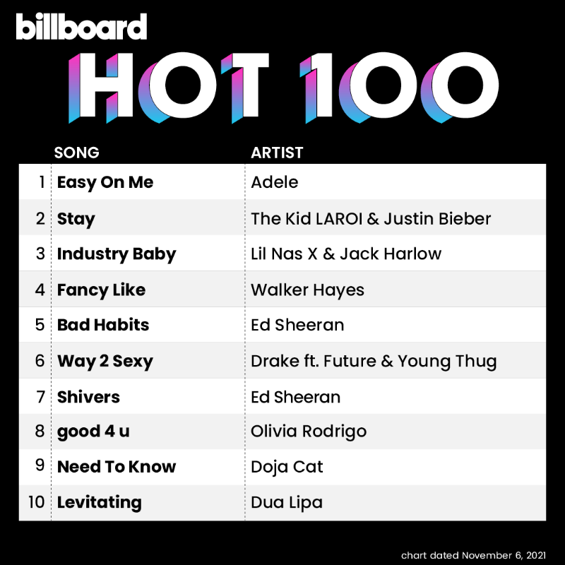 Billboard Charts On Twitter The Hot100 Top 10 Chart Dated Nov 6 2021 Twitter